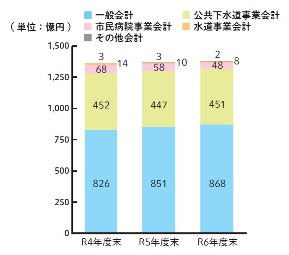 将来負担比率:都市計画税の増加や、土地開発公社負債額の減少などにより、令和5年度に比べ、0.3ポイント改善しました。