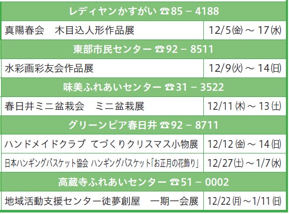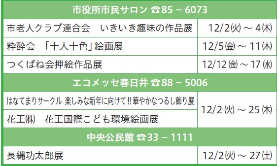 ところ:(1)イーアス春日井(六軒屋町)(2)朝宮公園(3)市民会館