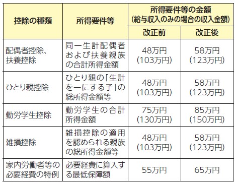 各種扶養控除等の適用を受ける場合における所得要件額が10万円引き上げられます。