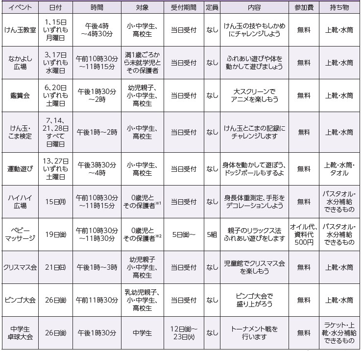 ・定員のあるイベントの受付は、電話または直接児童館まで(定員になり次第受付終了)