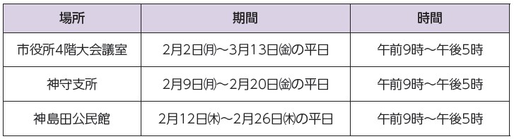 受付開始日:下記各会場の予約受付開始日の午前9時