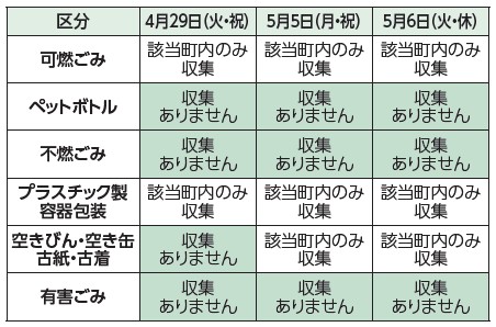 対象ごみ:可燃ごみ、プラスチック製容器包装ごみ、不燃ごみ、資源ごみ、ペットボトル、有害ごみ