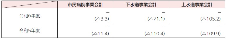 ※資金不足比率がない会計は「-(該当なし)」で表示し、参考に資金剰余の比率を(△)で示す。