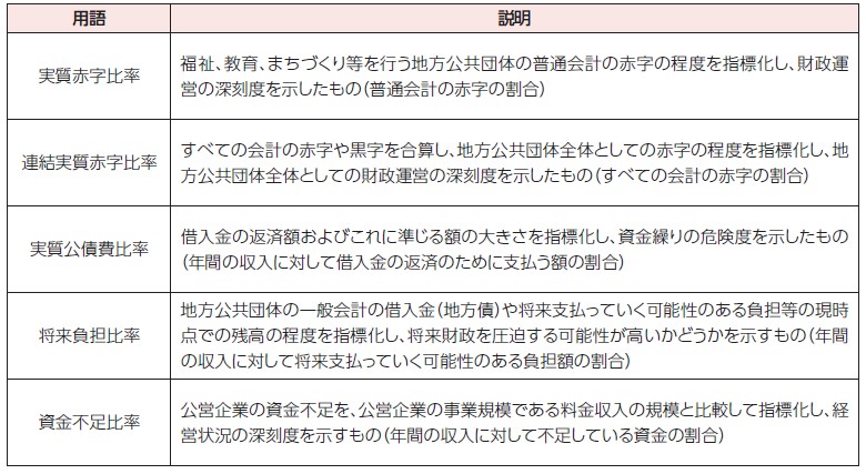 地方公共団体の財政破綻を未然に防ぎ、財政の早期健全化、再生を促すため、各地方公共団体は、毎年、健全化判断比率および資金不足比率を算定し、公表することが義務付けられています。