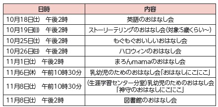 10月27日(月)~11月9日(日)の「読書週間」にちなみ、図書館では様々なおはなし会を行います。25周年スタンプラリーのためのイベントも予定していますのでお楽しみに!