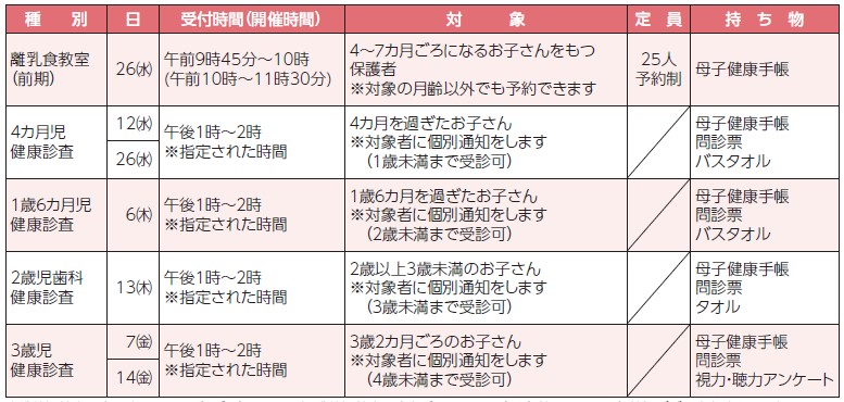 ■11月の母子健康診査、教室のお知らせ