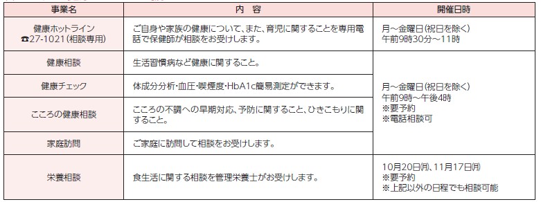 問合:保健センター(総合保健福祉センター内)
