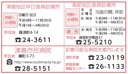 上記医療機関を受診される場合は、それぞれの時間外窓口に事前に電話確認のうえ受診してください。