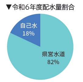 当市の水道水は約82%を県営水道からの受水によりまかなっています。