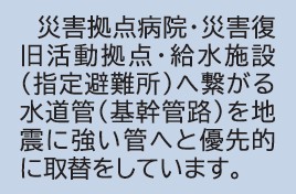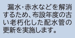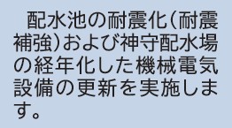 将来にわたり安全で良質な水道水を安定的に供給するため、必要な工事等を進めるとともに、経費削減など事業の効率化にも努めていきます。