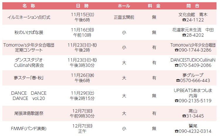 申込:11月7日(金)~21日(金)に電話または直接下記へ。