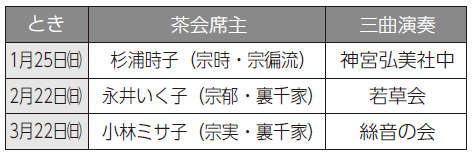申込み:涛々庵茶会は電話又は直接、三曲定期演奏は不要