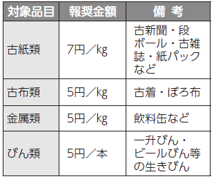 市では、資源ごみの集団回収に協力いただいた団体に報奨金を交付しています。各種団体でのごみ減量やリサイクルの推進をお願いします。商店・事業所などから排出されたものは対象となりません。申請には事前に団体登録が必要です。