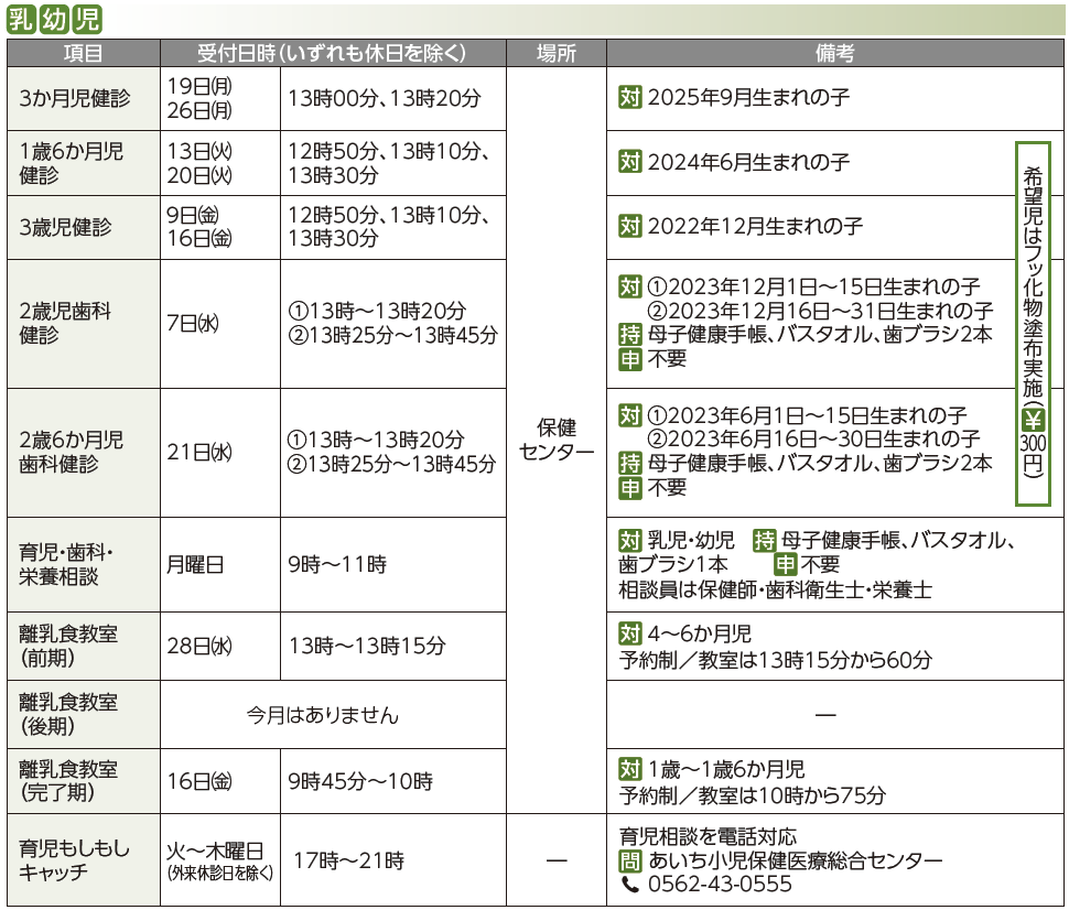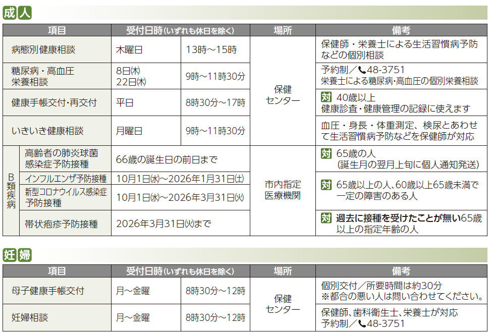 令和7年度に行う健診の内容や日程は、広報へきなん2025年2月号に掲載しています。