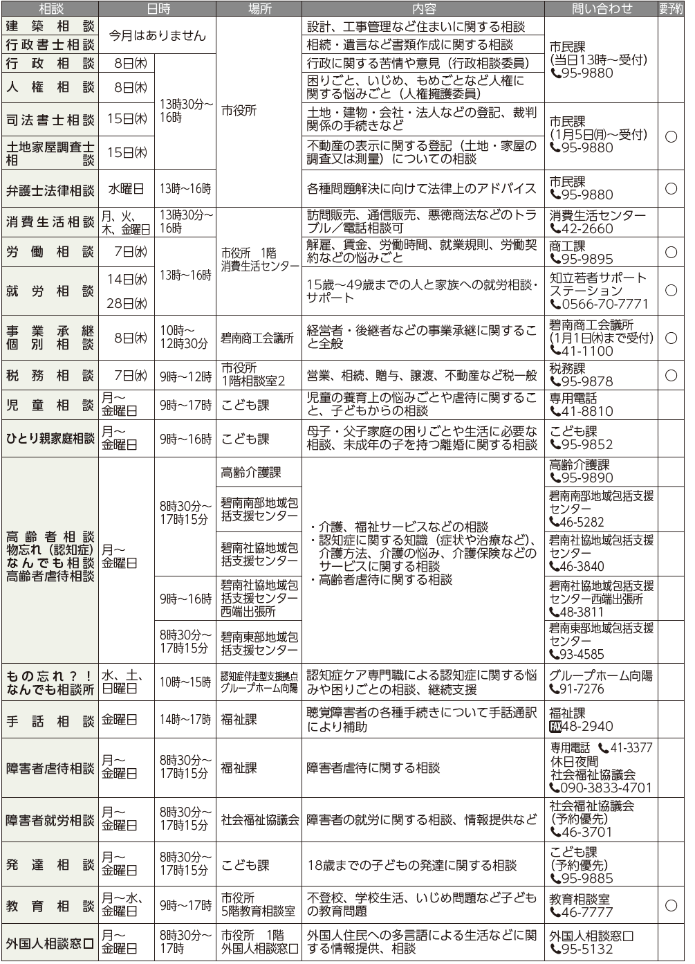 くらし 1月相談 46/48 前の記事 次の記事 発行日 : 2025年12月01日 自治体名 : 愛知県碧南市 広報紙名 : 広報へきなん 2025年12月号 №1973 ※いずれも無料で、施設休館日は休みです。一部の相談は先着による定員制です。 Tweet シェアする 1月保健だより すいすい水族館