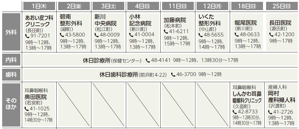 ※在宅医は変更の場合もあるので、問い合わせの上、出かけてください。
