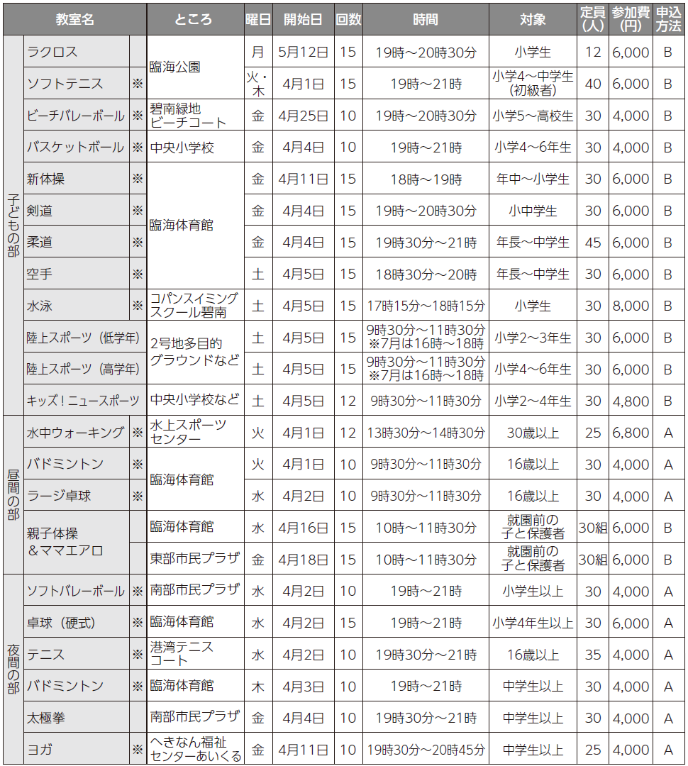 問合せ:NPO法人へきなん総合型スポーツクラブ