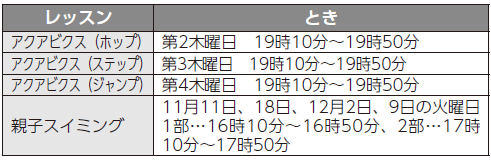 定員:各18人(親子スイミングのみ各5組)