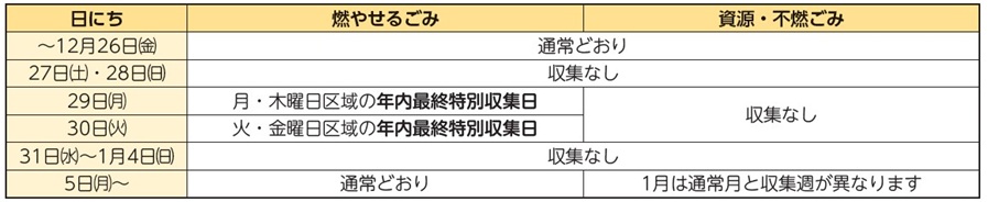 年末年始の収集は、クリーンカレンダーを確認してください。
