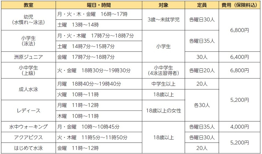 ※1月19日(月)から各教室開始日の前日までに、費用を洲原温水プールへ。