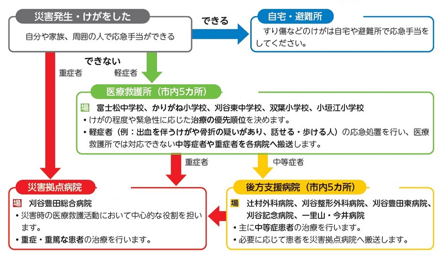 震度6弱以上の地震が発生した場合は、市内の診療所などは一時的に閉鎖され、医師などが医療救護所に参集して医療救護活動を行います。