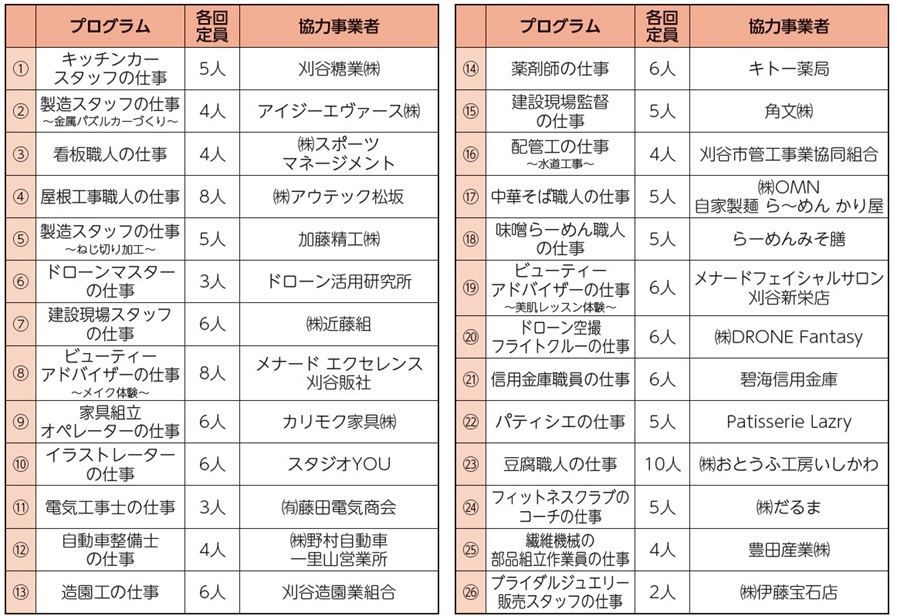 ※仕事体験プログラムは10時、11時10分、13時、14時10分、15時20分(各50分)
