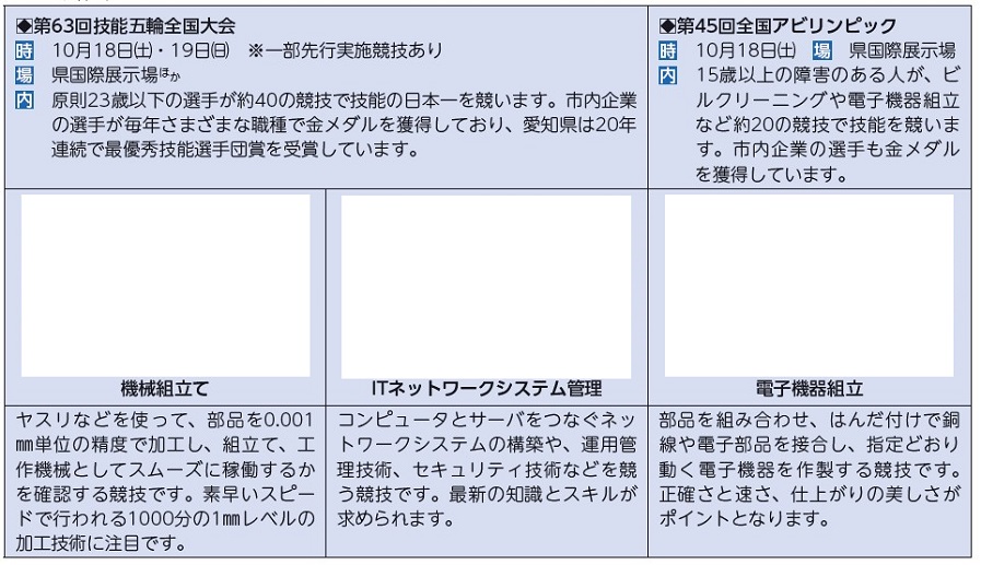 ・高校・特別支援学校高等部の生徒や技能士などによる解説付き見学(2競技で1時間程度)を実施します(大会HPで要事前申込み)。
