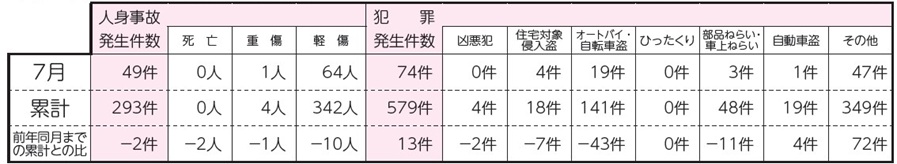 その他 7月に市内でおきた交通事故と犯罪 31/42 前の記事 次の記事 発行日 : 2025年09月15日 自治体名 : 愛知県刈谷市 広報紙名 : かりや市民だより 令和7年9月15日号 ※暫定値 Tweet シェアする 情報コーナー 暮らし 防犯しようよ! スマホ連動型防犯カメラで被害防止!