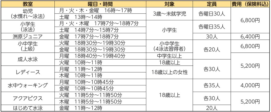 ※11月3日(月)から各教室開始日の前日までに、費用を洲原温水プールへ。