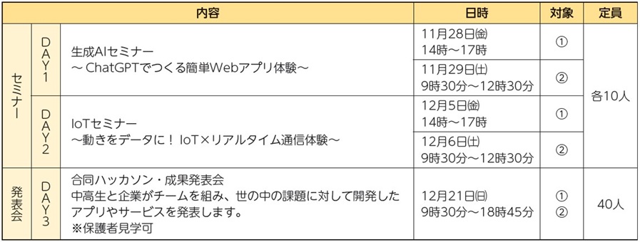 ※DAY1・DAY2のセミナー受講者は、DAY3の発表会への参加が必要。