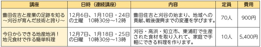 ・参加者全員の申込共通事項・年齢(学年)・勤務先または学校名(市外の人)をQR、ハガキ(1講座1枚)または直接、総合文化センター(〒448-0858 若松町2-104)へ。