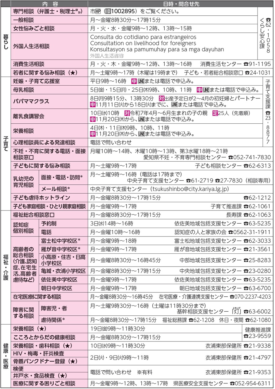 くらし 12月の相談など 40/49 前の記事 次の記事 発行日 : 2025年11月01日 自治体名 : 愛知県刈谷市 広報紙名 : かりや市民だより 令和7年11月号 ★は予約制 *は祝日も相談可 各種オンライン相談は、市HP(【ID】1007637)をご覧ください。 Tweet シェアする 情報コーナー 暮らし 日曜等当直医
