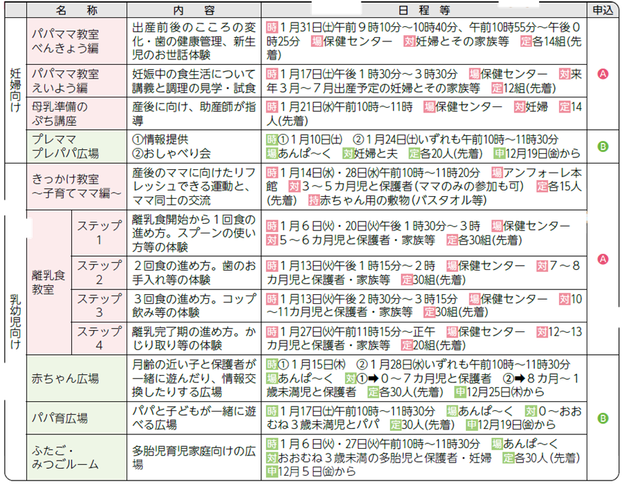 B:申込み…各申込開始日から 問合せ…あんぱ~く【電話】72-2317