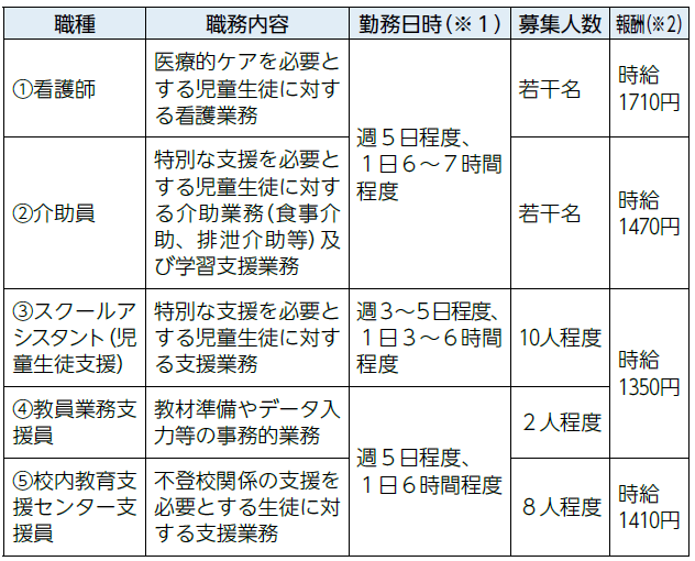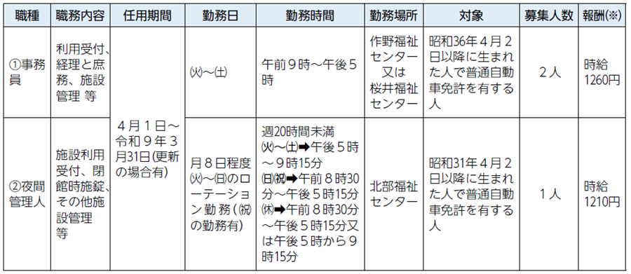 任用期間:4月1日以降の採用日~令和9年3月31日(更新の場合有)