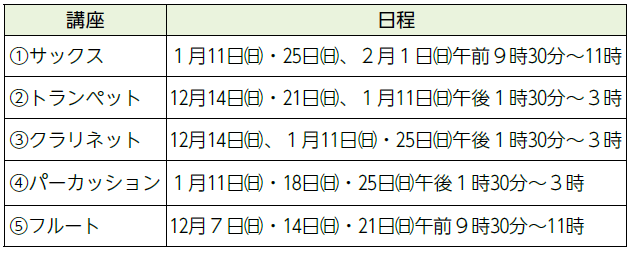 対象:演奏経験(初級者又は部活動で演奏)のある市内在住の中学生(公立私立不問)