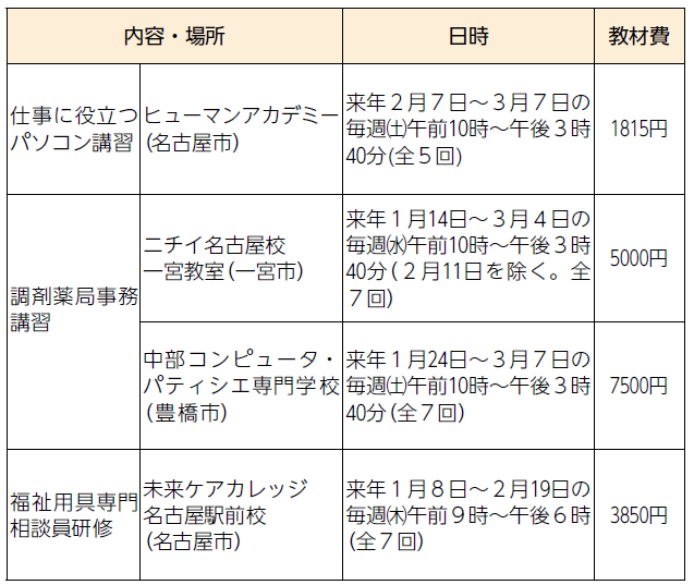 ひとり親家庭の父母、寡婦の自立を促進することを目的に、就職に結びつく可能性の高い技術・資格を取得するための講習会です。