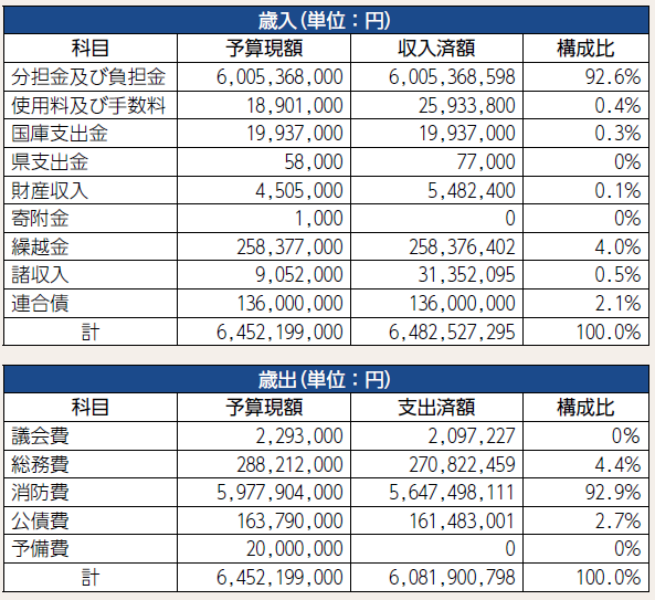 ○令和6年度衣浦東部広域連合一般会計歳入歳出決算