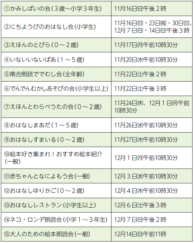 ・11月30日(日)午前10時~11時30分…ぬりえ、折り紙、缶バッチ作り、囲碁体験