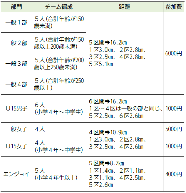 内容:前走(自転車)、大会運営、走路員等(前走以外の役割は事務局で決定します)