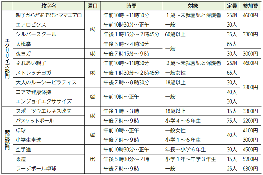 ※定員に達しない教室は、11月25日(火)午前9時から先着順で再度受付します。詳細は同協会HP参照。
