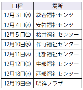 ※時間はいずれも午前10時~正午又は午後1時30分~3時30分。