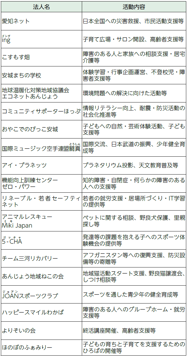 ※法人名には、特定非営利活動法人又はNPO法人がつきます。