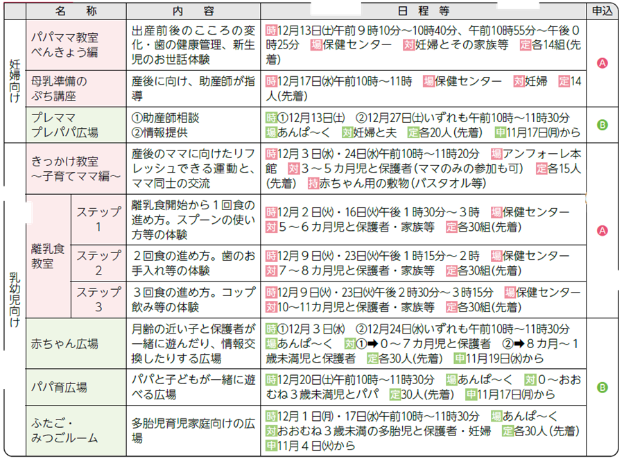 A:申込み…11月10日(月)から 問合せ…保健センター【電話】76-1133