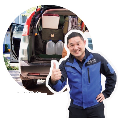 自家用車にも非常持ち出し袋を入れておけば、出先でも安心です!
