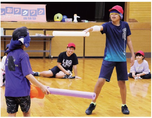 チームに分かれた小学生がさまざまな競技で対戦。「気配切り」と呼ばれるゲームでは、頭と体を目いっぱい使って勝利を目指していました。