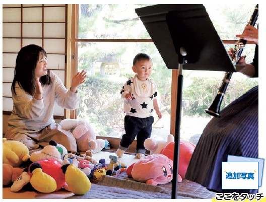 妊婦~未就園児の保護者が交流するサロン。クラリネットの音色に親しみ、子どもの成長を喜び合う姿は、皆さん優しい表情で満ちていました。