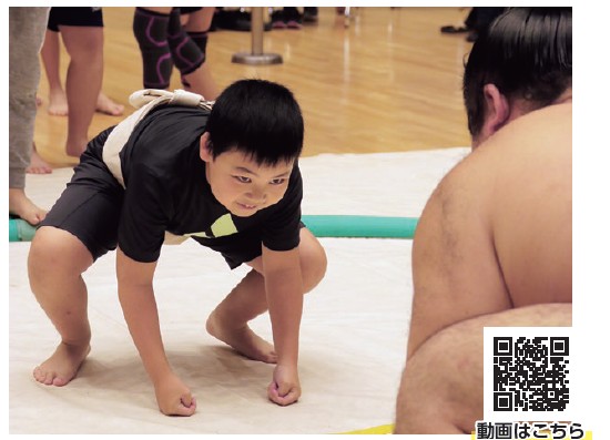 子どもたちがまわしを着けて、四股や柔軟、すり足などの稽古を体験。最後に力士と対戦した際には、上手投げなどで白星を上げていました。