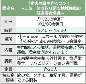 ※心疾患・整形外科的疾患などのある方は、主治医に相談してから運動教室に参加してください。