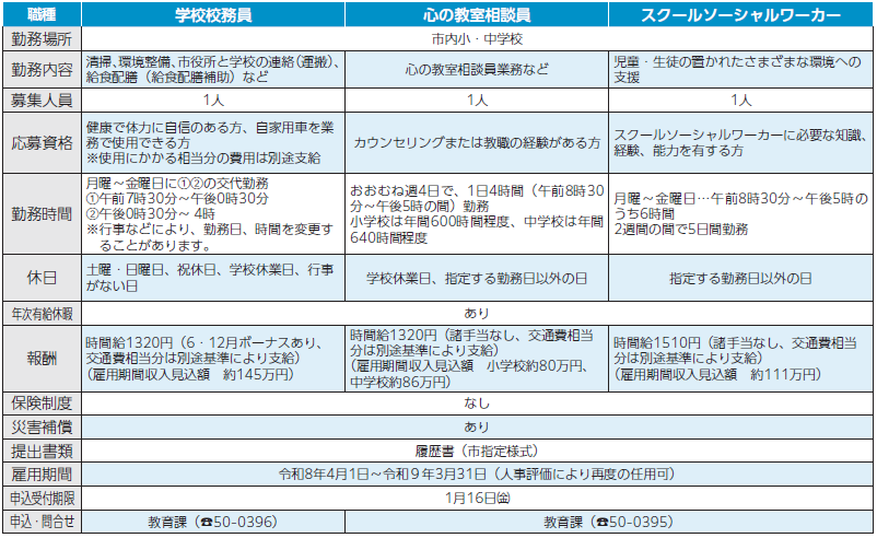 しごと 会計年度任用職員(パート職員)を募集します(2) 4/31 前の記事 次の記事 発行日 : 2026年01月01日 自治体名 : 愛知県江南市 広報紙名 : 広報こうなん 令和8年1月号 採用申込フォーム(電子申請)(本紙PDF版7ページ参照) ※教育課の職種のみ Tweet シェアする 会計年度任用職員(パート職員)を募集します(1) 会計年度任用職員(パート職員)の登録を随時受け付けています