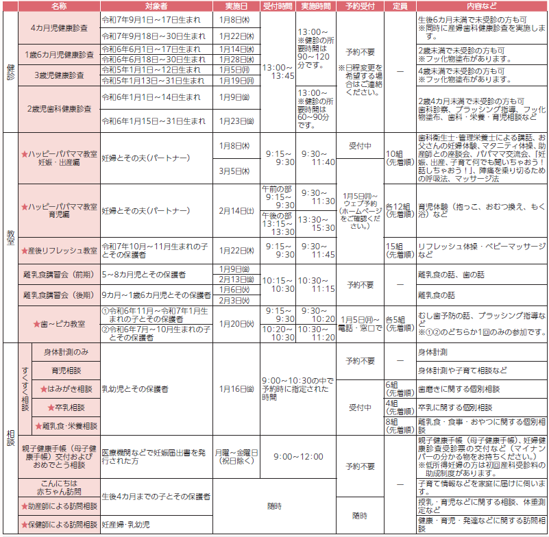 ※保健センターを利用するときは、親子健康手帳(母子健康手帳)をお持ちください。